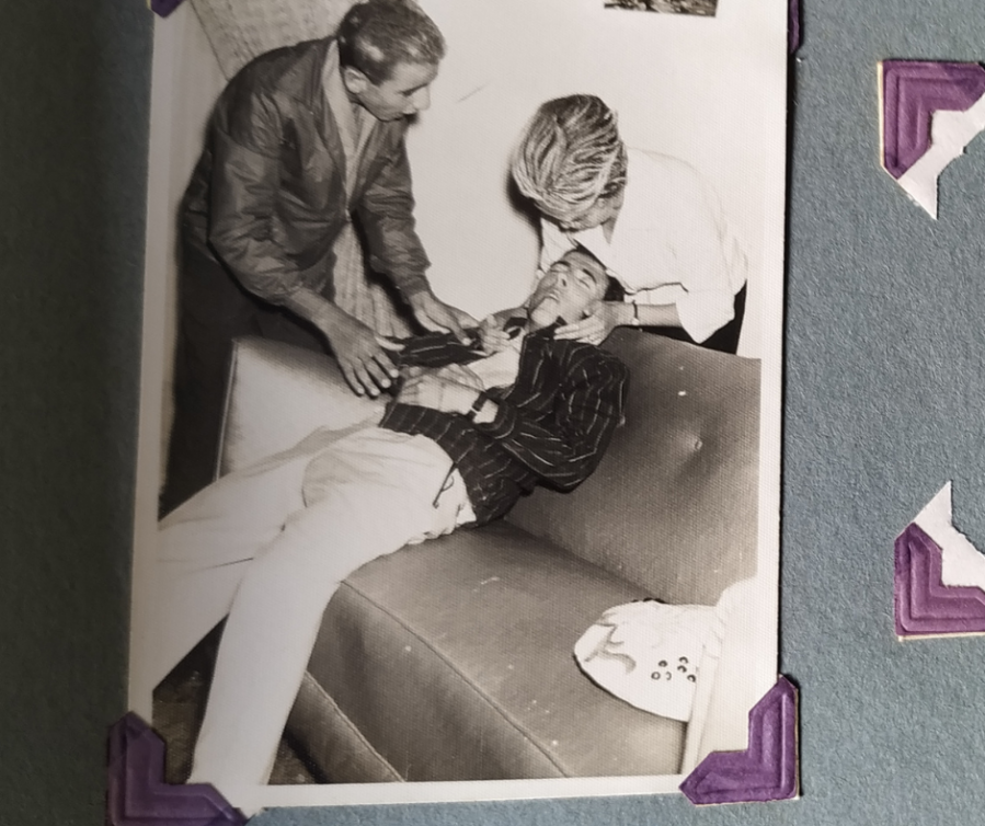 Guilherme, Carlos e Expedito ao final de uma peça teatral no Salão Paroquial da Pompeia.